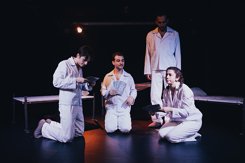 Papazkaçtı, sistemin dışına itilmiş dört karakterin plazalar, evler ve caddelerden tımarhaneye uzanan çarpık; bir o kadar da gündelik yolculuğunu anlatıyor. Bireyin akıl sağlığını belirleyen toplumsal normları, bu normların altında ezilen ruhları ve deliliğin aslında ne kadar “inşa edilmiş” olduğunu trajikomik bir dille sorguluyor.