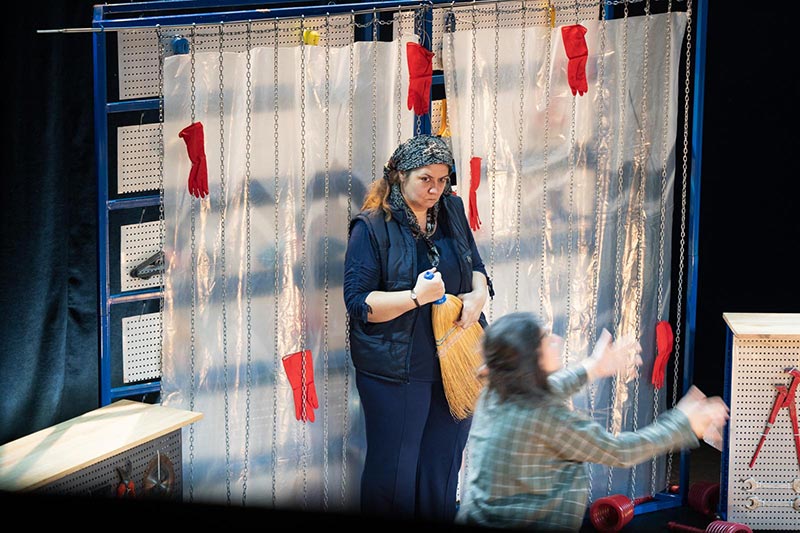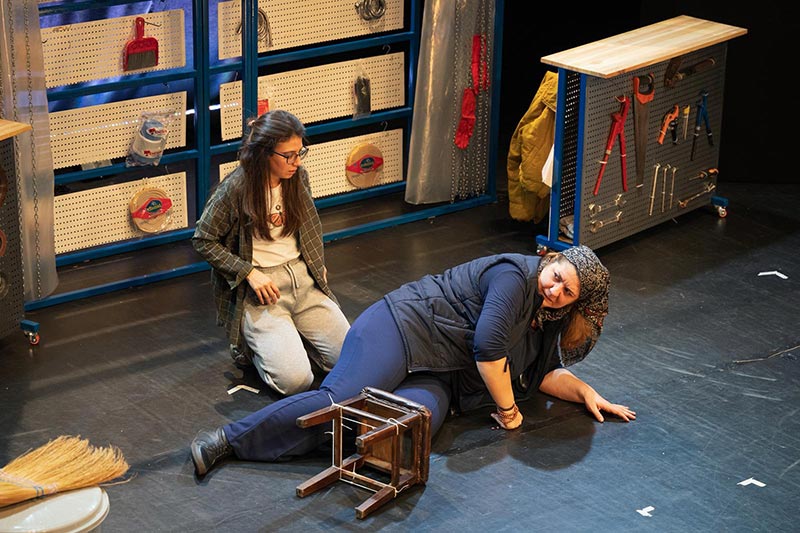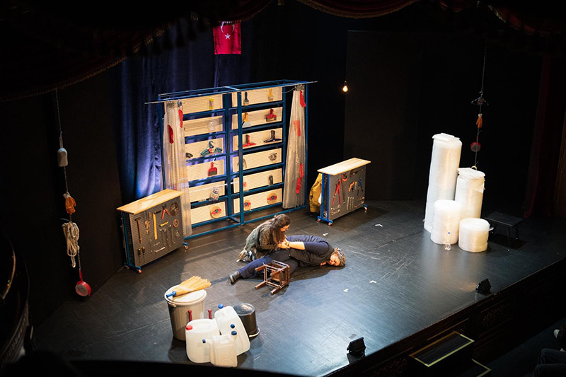 “Sanki Yaşamışız Gibi”, erkek-devlet-mafya düzeninin gündelik hayatta kadınlar üzerindeki etkisini bir nalbur dükkanı üzerinden sahneye taşıyor. Tek mekanda geçen hikaye, iki kadının çatışma ve dönüşümünü merkeze alarak, güç ilişkilerinin nasıl şekillendiğini ve nasıl değiştirilebileceğini arıyor.
