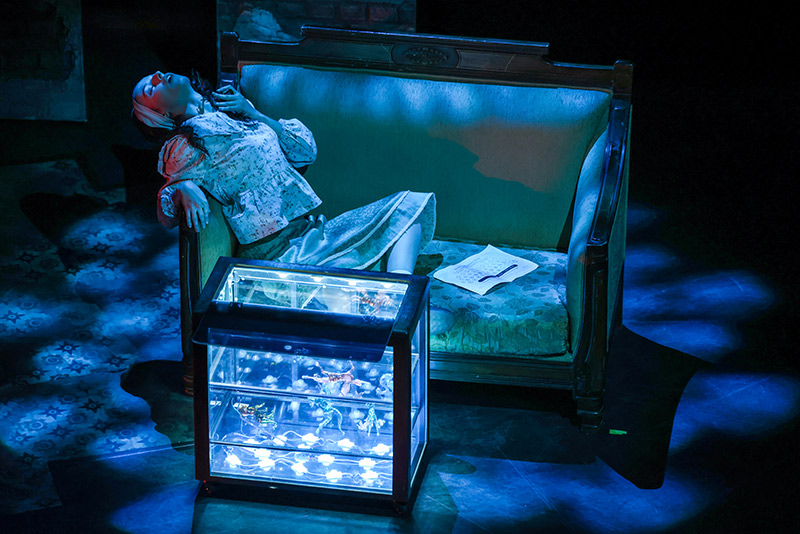 Laura’nın sırça hayvanları bu kez sahnede can buluyor. Her bir sırça, oyuncular tarafından temsil ediliyor.